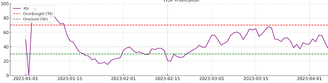 - 30선(초록색 점선)은 과매도 상태를 나타내며, RSI가 이 값을 밑돌면 자산이 과매도된 상태일 수 있습니다.